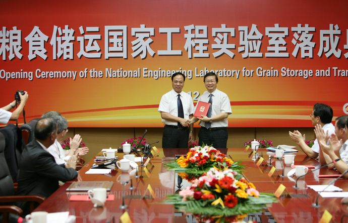 2012年9月3日,在我校隆重举行粮食储运国家工程实验室落成典礼后,国家粮食局吴子丹副局长正式受聘担任必发集团welcome欢迎光临兼职教授,校党委书记陈章龙教授为吴子丹颁发聘书。