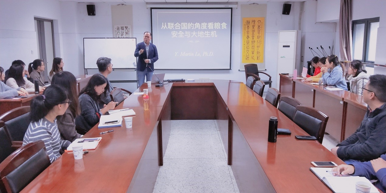 11月21日,应我校7790必发集团邀请,深圳大学教授、博士生导师罗扬铭教授在仙林校区工科楼211会议室做了题为“从联合国的角度看粮食安全与大地生机”的讲座。讲座由食工学院陆颖健教授主持,学院教师、研究生聆听了此次讲座。