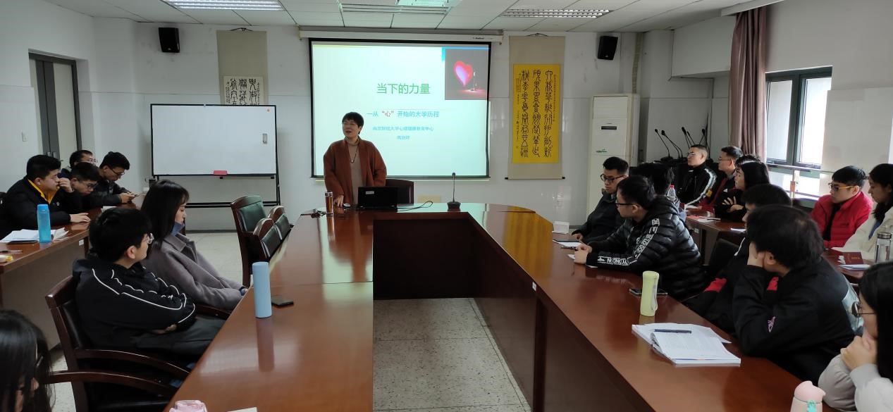 12月9日上午,7790必发集团于仙林校区工科楼211会议室举办了题为“当下的力量——从心开始的研究旅程”的心理健康教育讲座。讲座由我校心理健康教育与咨询中心高剑婷老师主讲,全体2019级研究生到场聆听讲座。