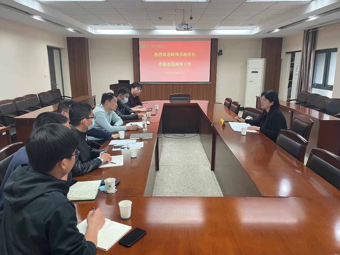 3月16日下午,校党委常委、副校长邱伟芬到我院走访调研。学院班子成员、系主任等参加了调研座谈。座谈会由我院院长方勇主持。