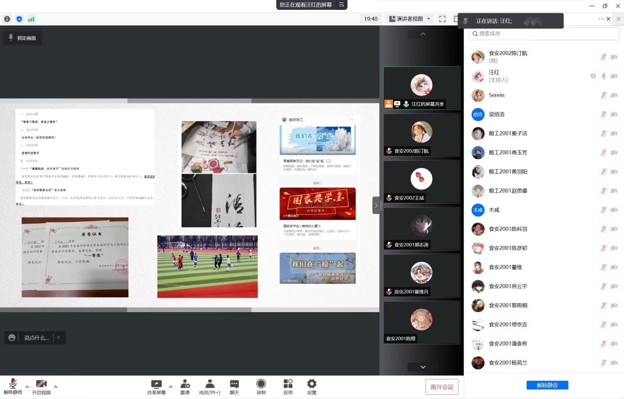 学院各年级疫情防控“云班会”的顺利召开,有助于辅导员更深入地了解同学们的学习、工作、生活情况,帮助学生解决困难困惑,增进师生情感。也展现了我院学子战胜疫情的信心和抗击疫情的担当,增强了班级的凝聚力和战斗力。