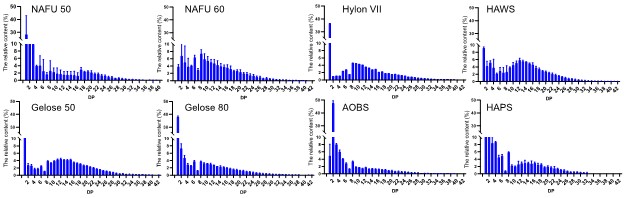 图 5 HAS颗粒表面脱支后支链长度分布(CLD)